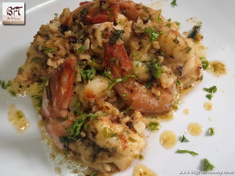 Step 1: Marinate the prawns with salt, lime juice, ¼ tsp. white pepper powder, garlic, half of the chilly flakes, 1 tsp. parsley and 1 tsp. olive oil. Leave aside for 15 minutes.