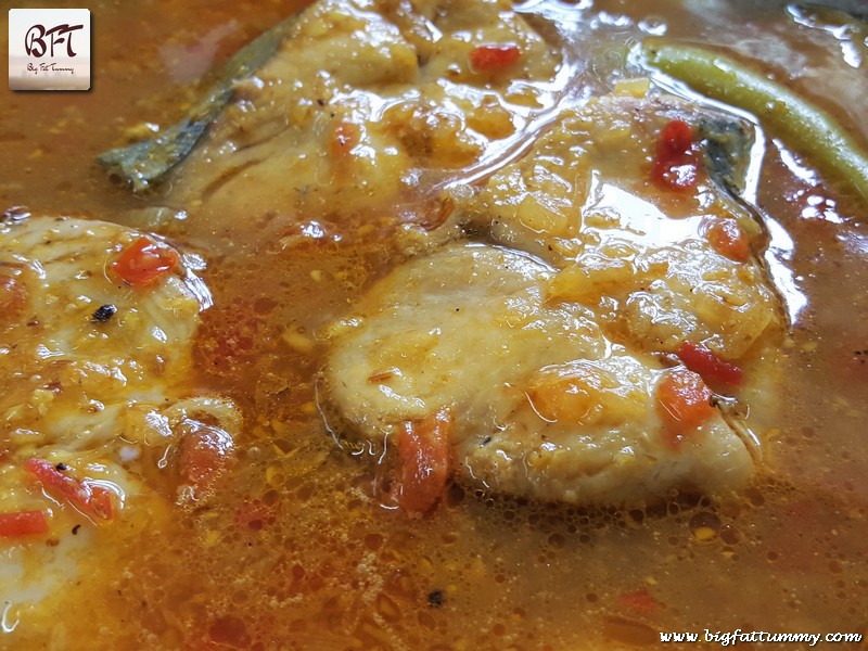 Goan Kingfish Jeerem Meerem is a light gravy which is served to convalescing persons. Lesser amounts of spices and more of pepper and cumin probably because of the benefits of pepper and cumin on the gastric system. Also, the use of tamarind makes the food more delectable.