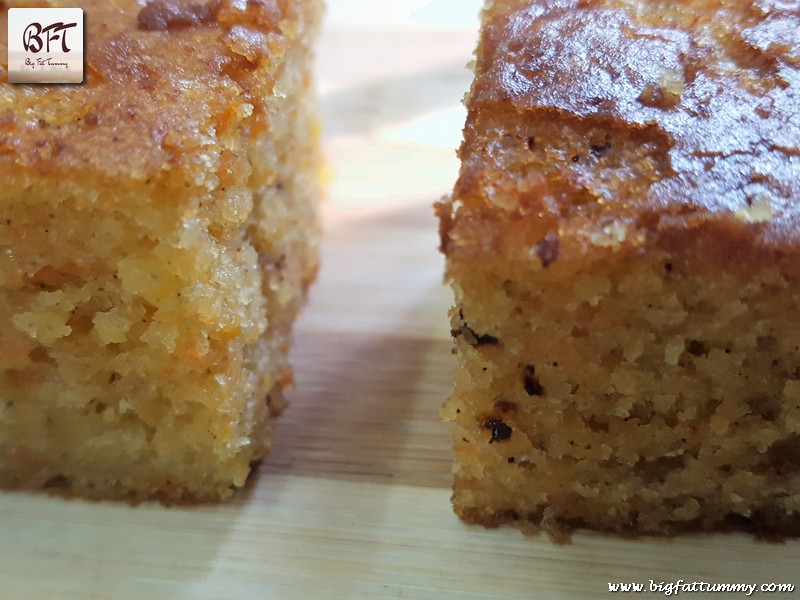 Whole wheat flour, carrots and walnuts make this eggless carrot cake a healthy option. The olive oil gives the cake a nice moist texture which remains so for at least two days, the cake will disappear much before that though. Eat as a tea time snack or use as a tiffin filler for kids.