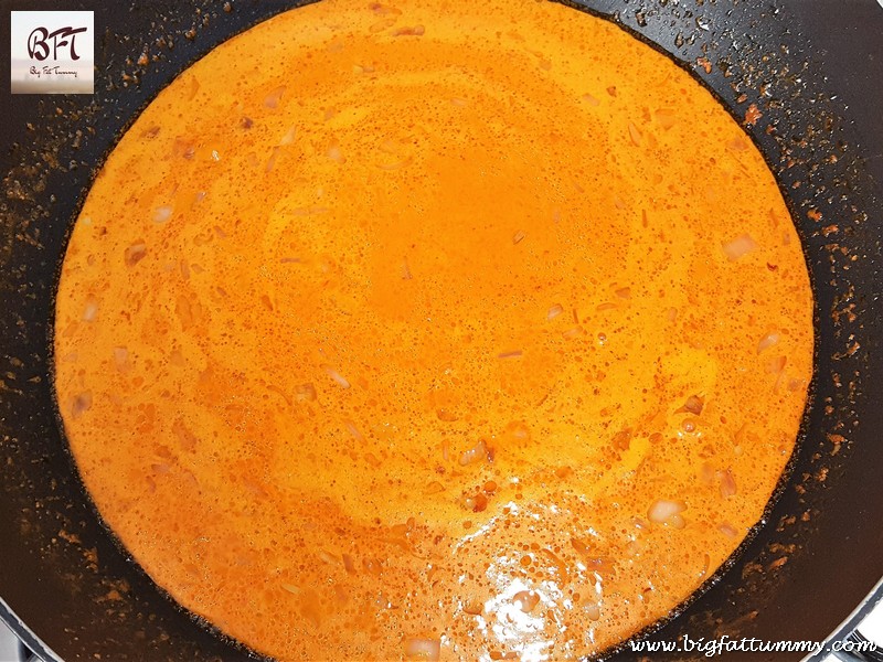 Step 2: Heat 1 tbsp. oil in a vessel and fry the onion till soft. Add the spiced coconut milk, sugar and 1 tsp. salt and bring it to a boil on medium heat.