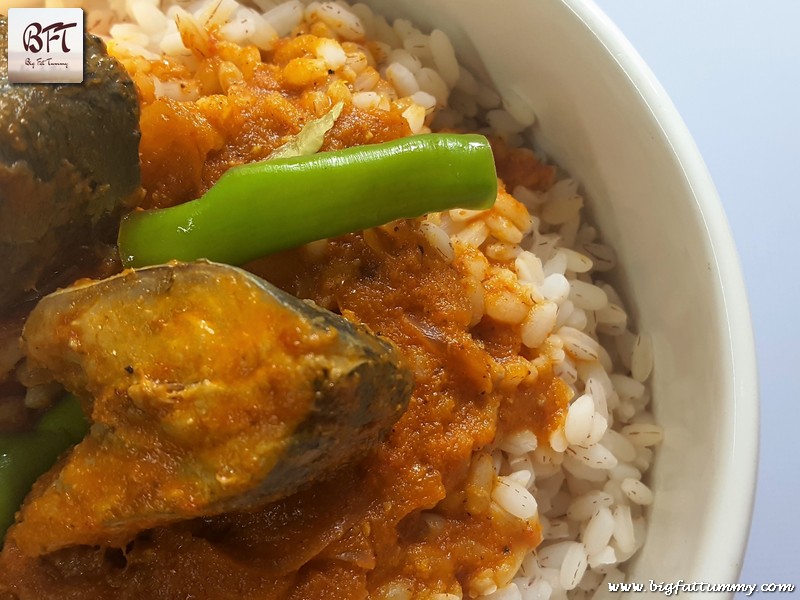 Mackerels lend a unique flavour to any curry. Hence, there exist many variations of curries made with mackerels. This mackerel curry is spicy with a nice tang that you can enjoy with hot steamed rice. If you have the unpolished parboiled rice, then it will be even perfect. Use very little curry if serving children.