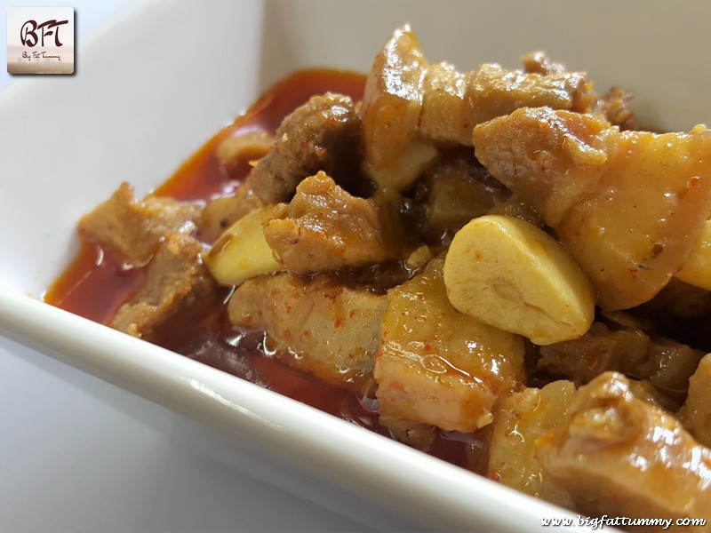 Hubby dear also indulges in cooking sometimes. He being the only child helped his mother in the kitchen sometimes. Drawing inspiration from his mother’s cooking he created the slow cooked pork curry. Don’t be discouraged by his generous use of spices, cause at the end, the pork curry turns out fairly mild in taste. It has just the right amount of pungency and sourness. The health benefits of garlic and the spices used are also well known. Certified that you will like this preparation as it has passed the litmus test. Certified by our toddlers!