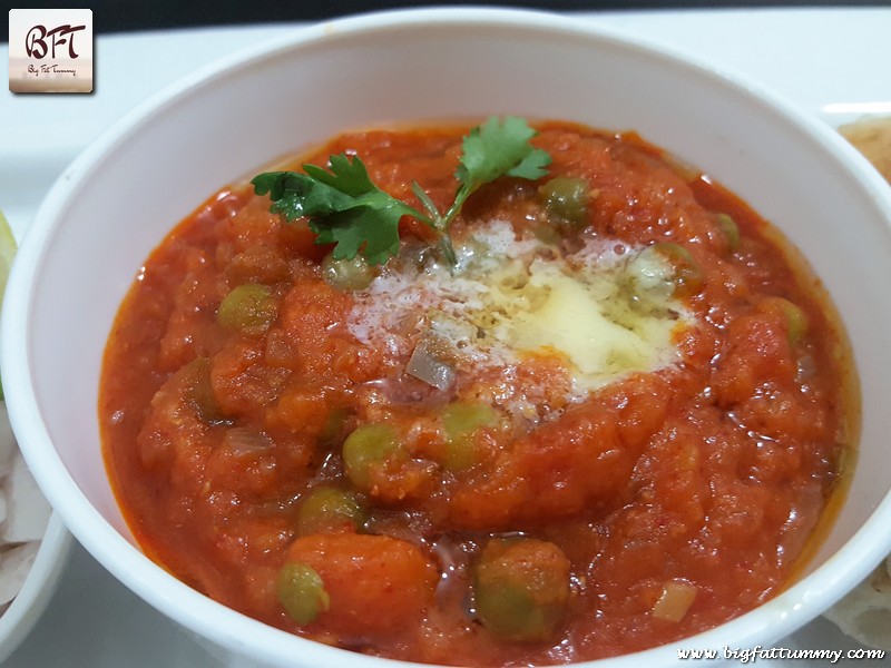Serve garnished with a tsp of butter (more the butter, better the taste) and lime, finely chopped onion and buttered pao.