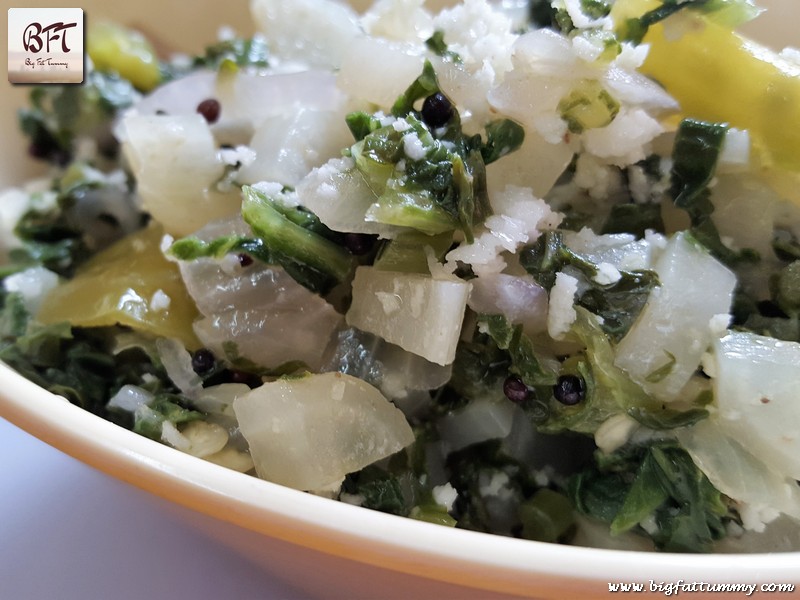 Step 3: Add the chopped vegetable and salt. Stir fry for a minutes. Cover and cook on low heat for 5 to 6 minutes, till done. Don’t overcook, the vegetable must be cooked but crunchy. Sprinkle the grated coconut and cook covered for another minute.