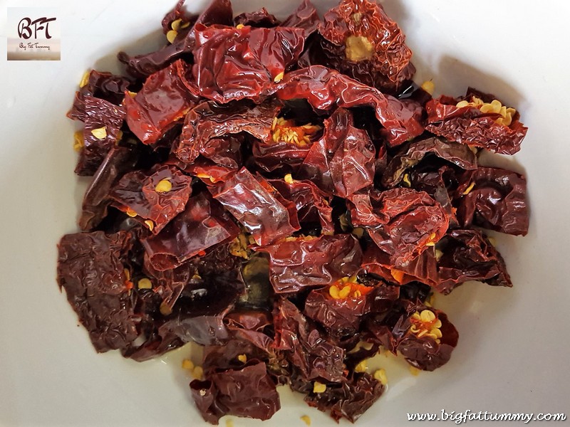 Step 1: Soak the Kashmiri chillies in the vinegar for 2 to 3 hours. Later, take them out and keep aside.