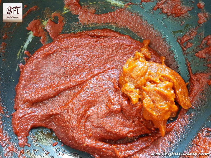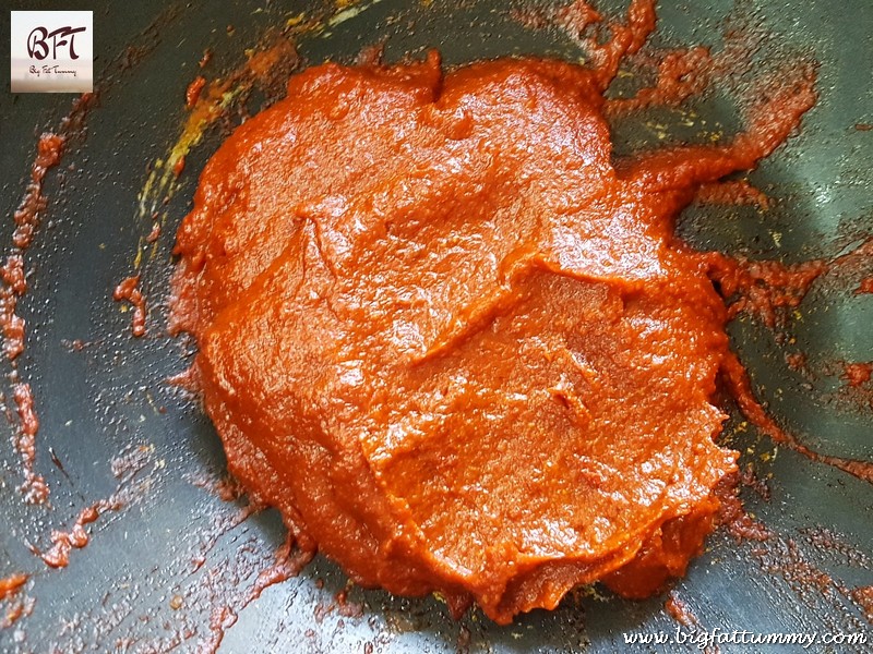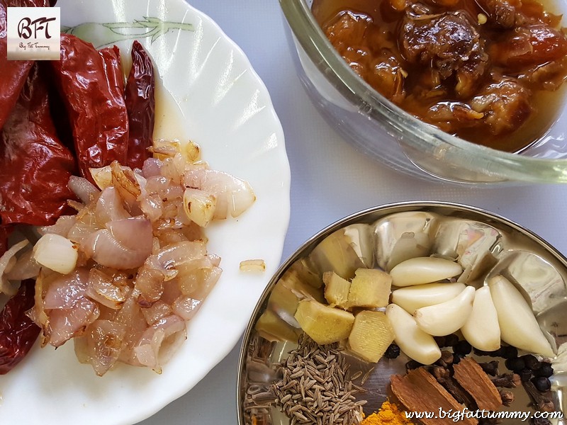 Step 5: Heat another 2 to 2 ½ tbsp. of oil in the pan you used for the onions and when hot add the ground masala and sauté for 3 minutes on low heat. Then add the date paste and sauté for another 3 minutes. Switch off the heat and allow to cool.