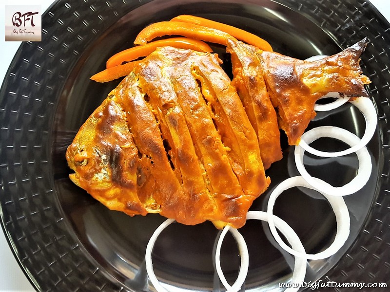 Grilling gives fish a different texture and flavour. The fish is juicy in the inside while crisp on the outside. Less oil is also used and so it is a healthier option. You need to use your OTG to make the grilled pomfret.