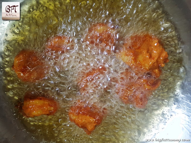 Step 5:     Fry the prawns in the same pan a few at a time for 2 to 3 minutes or till done. Remove and place on a plate lined with kitchen tissue.