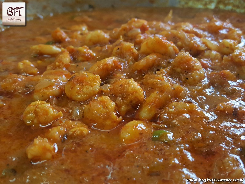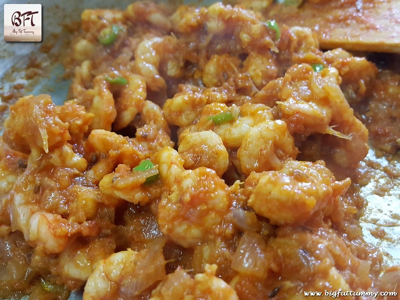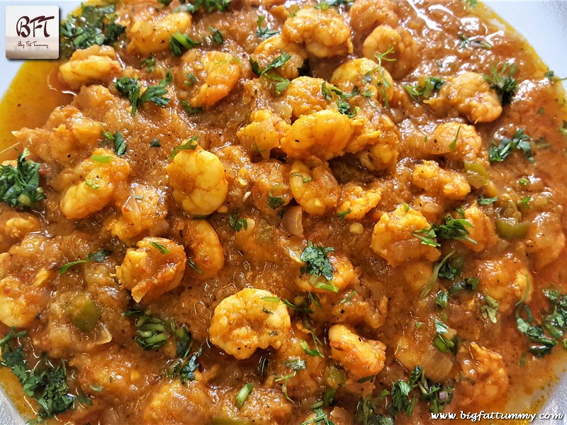 This is a quick and easy recipe for Prawns Masala that you can cook in no time. Although I have used fresh prawns, you could also try it out with frozen ones.