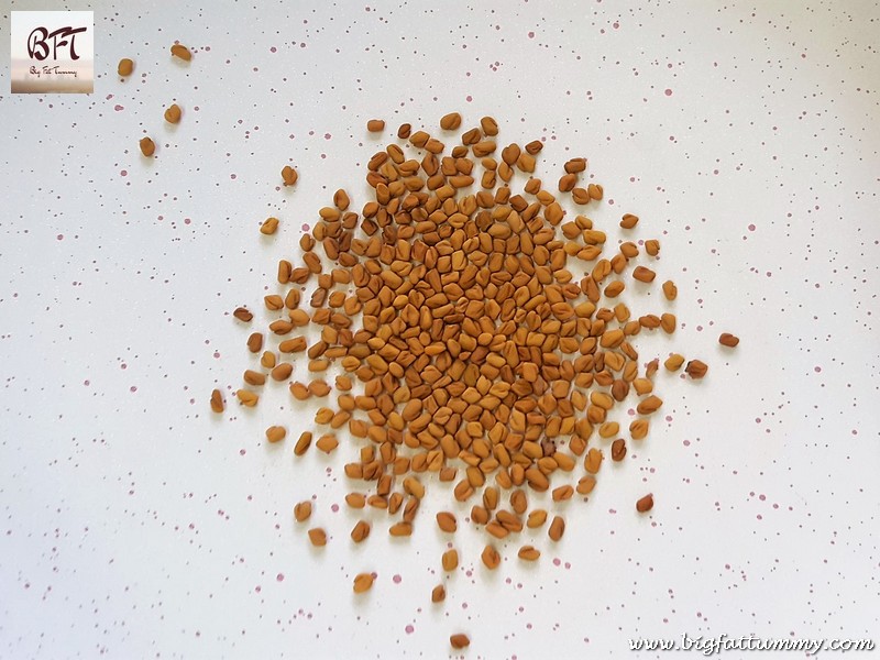 Step 5: Dry roast the methi seeds on low heat till fragrant and keep aside. Do the same for the mustard till they splutter and take off the heat immediately. Allow both the ingredients to cool and later grind both together to a fine powder.