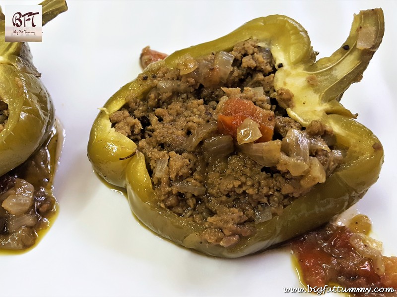 The Capsicum Stuffed with Beef Mince prepared with fresh mince tastes yummy. Capsicum stuffed with mince enhances the flavour of the mince as well as adds to the presentation. Simple to make and good to serve at a party or get-together . You can serve it as an accompaniment with rice and curry or standalone with bread. This recipe was shared to me by my friend and member of Madhouse Balcao (read about me), Betty Pires. It is her Grandma’s recipe.