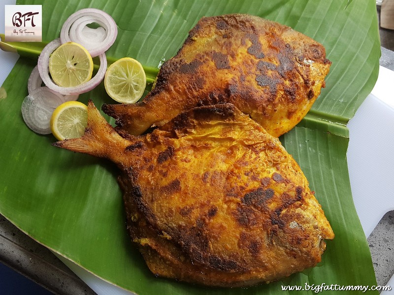 Step 6:     Heat the oil in a frying pan and shallow fry the pomfrets on both sides till light brown. Serve hot.
