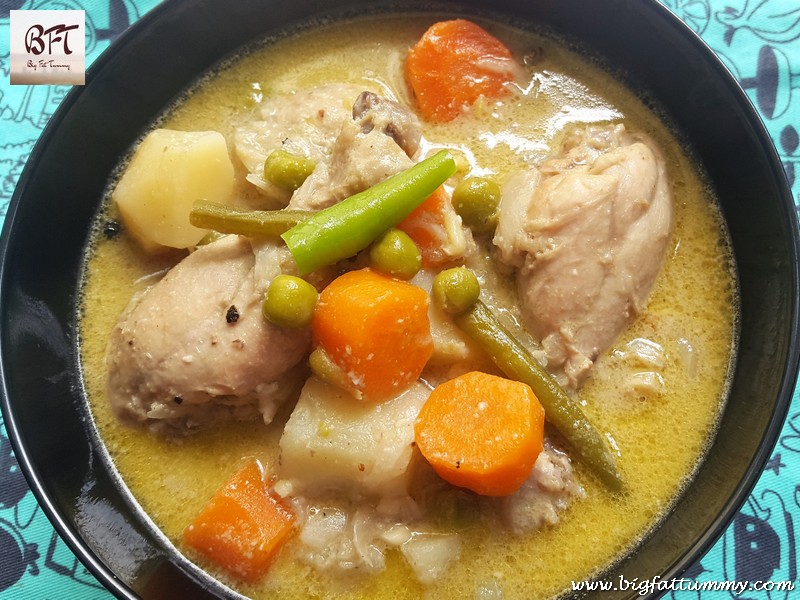 On one of our vacations to Kerala I had an occasion to eat a Kerala Chicken Stew. This recipe of mine is inspired by that dish. The Chicken stew is a mild flavoursome curry and would go very well with appams, or rice flour bread. Just as well, it tastes good with rice and pulaos too.