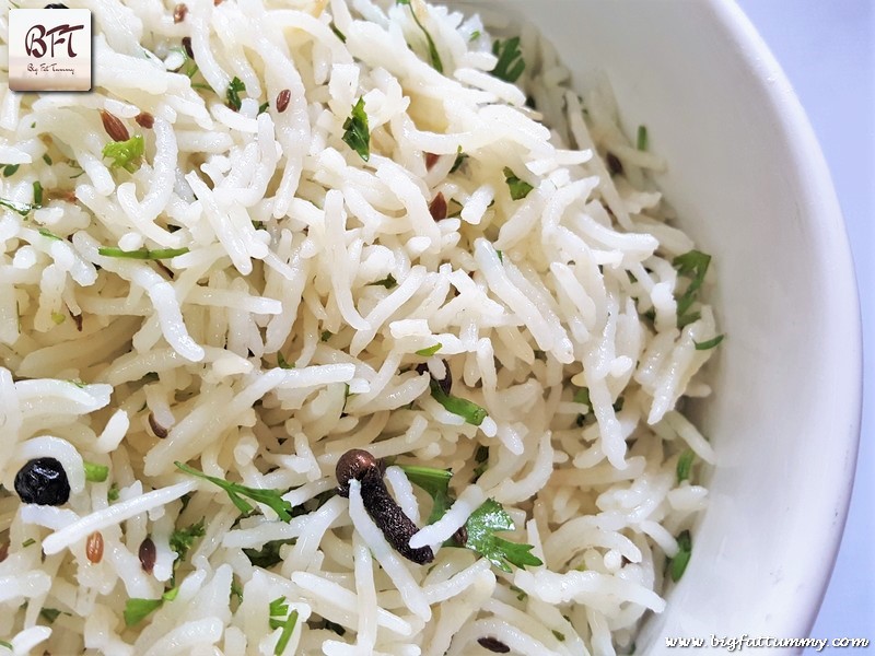 Jeera Rice goes well with all vegetarian Indian Punjabi gravies. I have added corriander which makes it more aromatic and tasty and therefore can also be eaten by itself. You can also pair it with non-vegetarian gravies. It is basically an alternative to eating plain rice and the jeera in the rice helps the gastric system.
