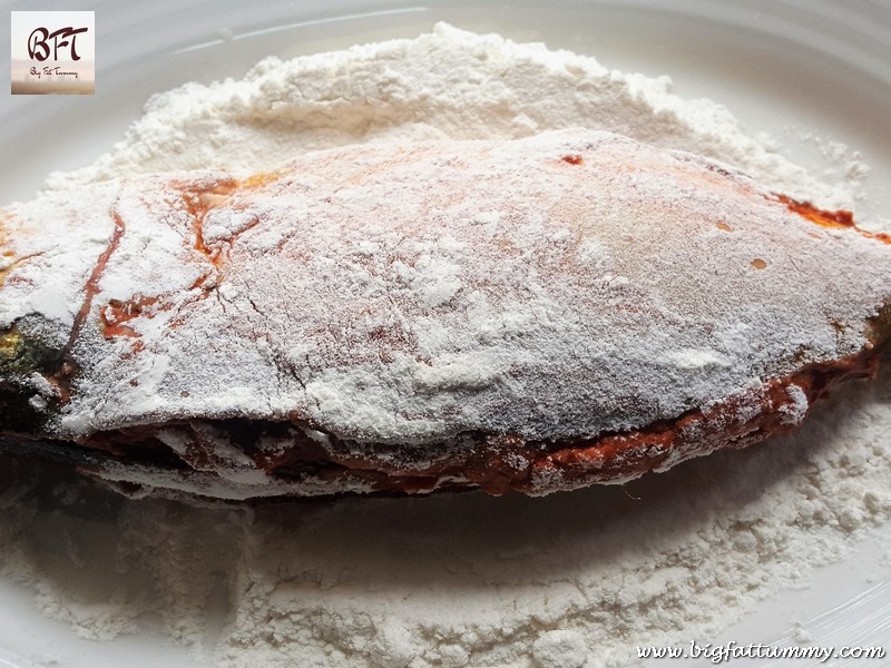 Step 4: Stuff each mackerel with 1 to 1 ½ tbsp. of the stuffing and then coat the sides with maida.