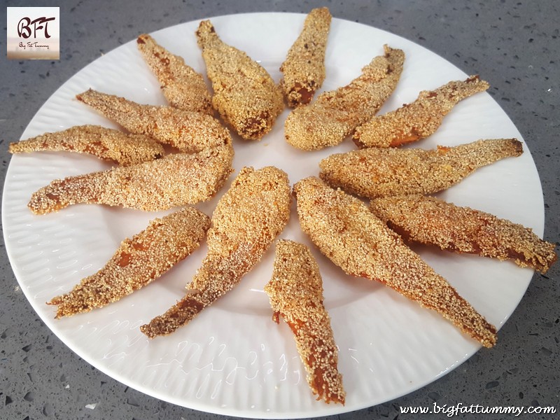 Step 4: Heat sufficient oil in a pan and when the oil is hot fry 5 to 6 rava coated fish on medium heat till light golden brown and crisp. Drain from the oil and place on a plate lined with paper tissues to soak the excess oil. Enjoy the crunch and flavour while hot.