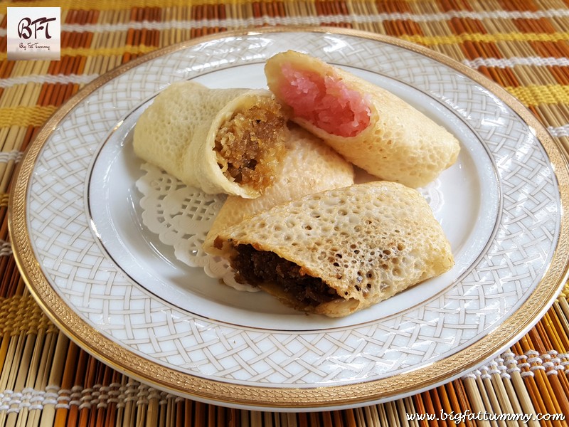 Allebelle / Mannkio are Goan pancakes prepared with maida (APF) and stuffed with a coconut filling. They are a popular evening snack in Goa and are also made for special occasions and almost definitely on Shrove Tuesday (The last day before the beginning of lent – a period of fasting and abstinence that Christians observe)