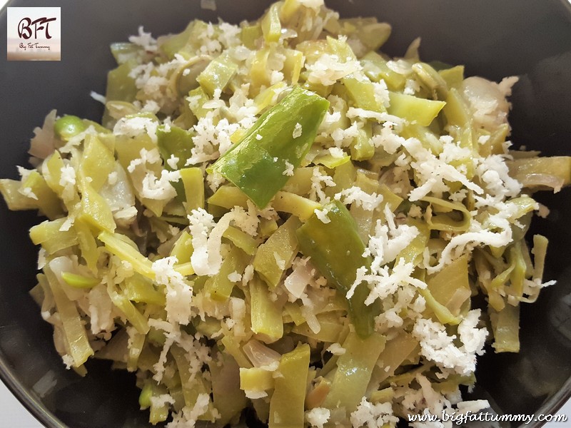 Step 5:     Switch off the heat and sprinkle the coconut over the vegetable and mix.