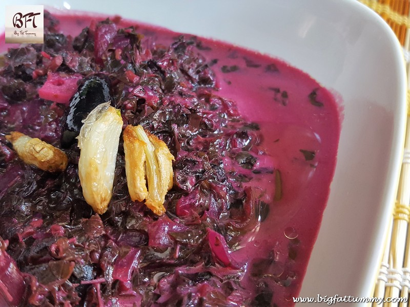 Step 4: The vegetable will be almost cooked. Add the kokum petals with the water and ½ tsp. salt and cook covered for another 5 minutes or till the vegetable is fully cooked.