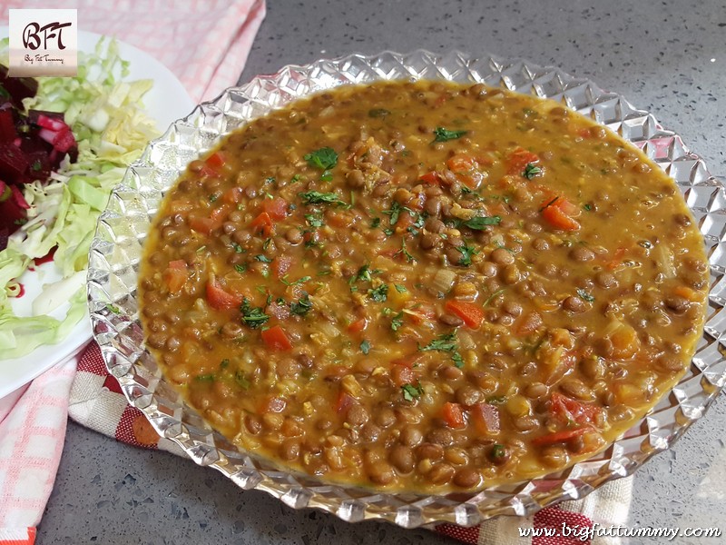 Whole Masoor Dal or Sabut Masoor Dal is a simple preparation of the red lentil. The preparation can be served with rotis, chapatis or with rice. When served with rice, just a salad and some pickle / papad will satiate your hunger as no other simple food will. The whole lentil also contains cholesterol-lowering fibre and cooks very quickly. Use organic whole masoor dal if available.