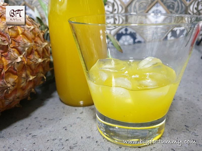 One of the things that you could do when you get home a Pineapple that is a bit sour – Make a Pineapple Squash. Store the squash in the refrigerator. When your kid/s are back from play, throw in some ice cubes in a glass. Pour some squash and top with water. Done ! Done ! Thank You Mom !