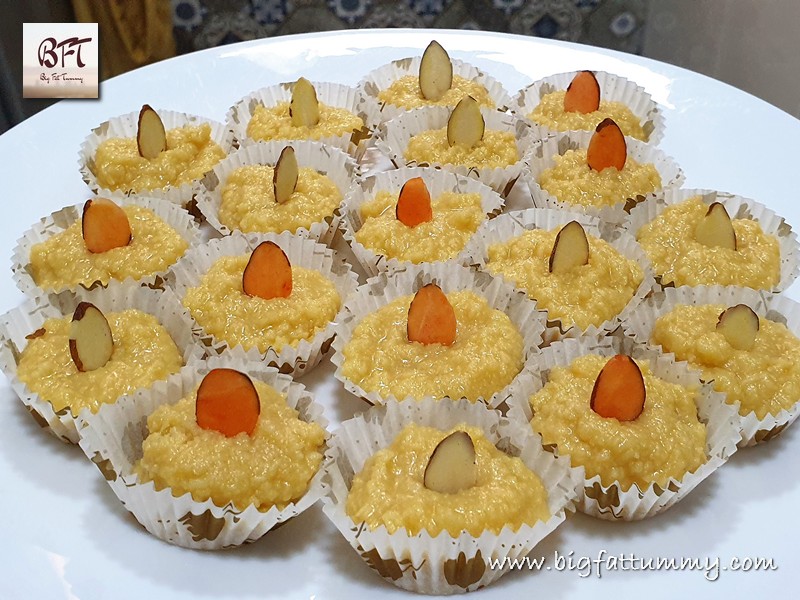 Step 6:     Shape into small balls using a small spoon. Place into readymade butter paper cups. Garnish with almond slivers. That’s it! You’re done (see notes below).