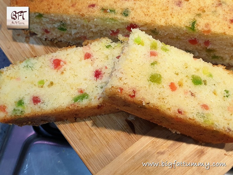 The child living inside each one of us just cannot resist the Tooti Frooti / Tutti Fruti Cake. Almost everyone’s favourite, the cake is made with Tutti Fruti. This as you may know, is candied raw papaya and is used in cakes, biscuits and ice-creams. The Tutti Fruti cake is good as a tea time snack or as a tiffin filler for your kids at school ( For easy tutti frutti muffins, click here or for an eggless tutti fruti cake click here )