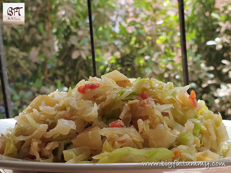 I have named this preparation of bhaji as Cabbage & Potato Bhaji – Goan Soup Style because it tastes very much like the simple vegetable soup prepared in Goan households. This vegetable has the distinct flavour of stock cubes and is plain and simple. It will serve as a good side with a spicy Goan Ambot Tik or even by itself with chapatis.