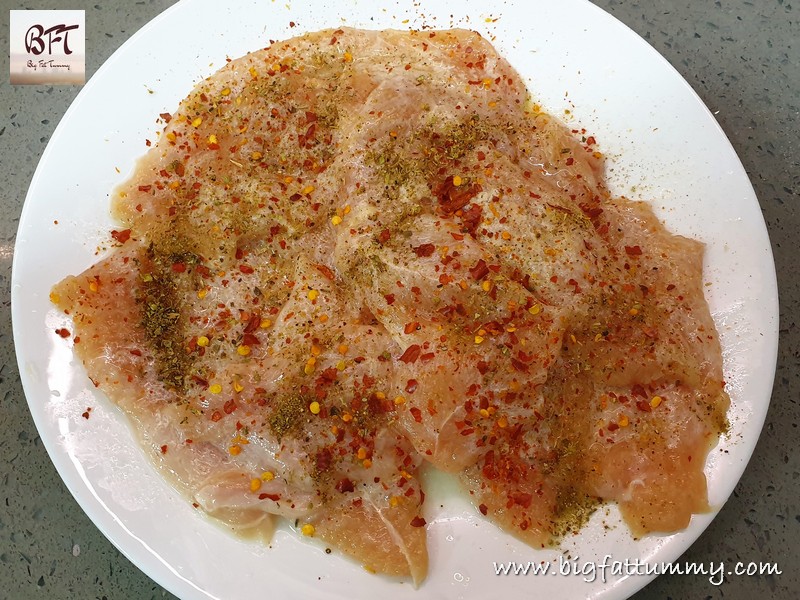 Step 2: Season with salt, lime juice, garlic, oregano and the red chilly flakes. Leave aside for 30 to 60 minutes.