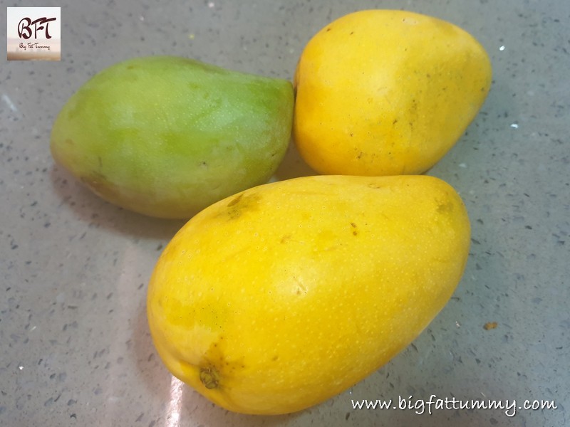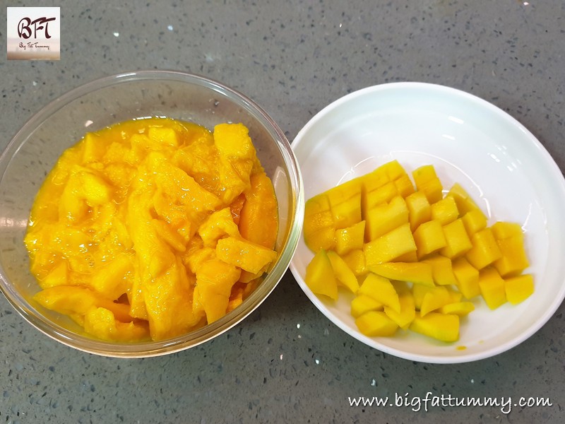 Step 1:     Peel and cube the ripe and raw mangoes.