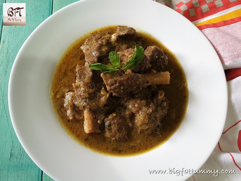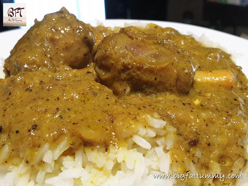 We believe the Mutton Pepper Curry is a perfect curry when you are carrying those niggles of a common cold in winter or during the monsoons. The easy to make broth will relieve you of your stuffed nose and open up your sinuses. Even otherwise, this no coconut gravy is easy to make, has zero oil and will definitely please your senses. Try it soon. (see note) For an equally good peppery chicken gravy click here or you could try the Chettinad Pepper Chicken Fry here.