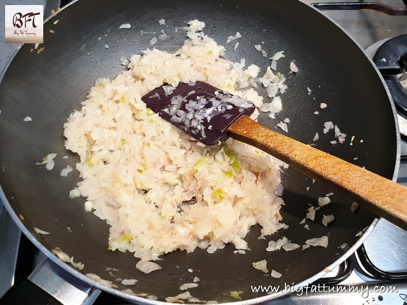 Step 1: Heat the oil in a pan and sauté the onion, garlic and green chillies on medium heat till the onions turn soft.