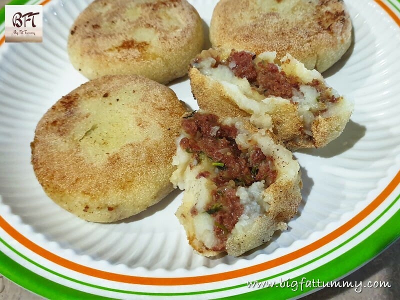 Corned Beef Potato Chops are a version of potato chops that I have been eating as a child. My aunt Gracie used to make them often. I never knew any other version existed until I was grown up except for the prawn ones. These Corned Beef Potato Chops are great tiffin fillers or an any time snack. Have them sandwiched in pao or bread, as a side or solo. Kids will love it with some ketchup (for a homemade hot & sweet ketchup, click here). These are melt in the mouth. If you’re not convinced – make some soon and enjoy the goodness 🙂 (For more potato chop recipes, click here)