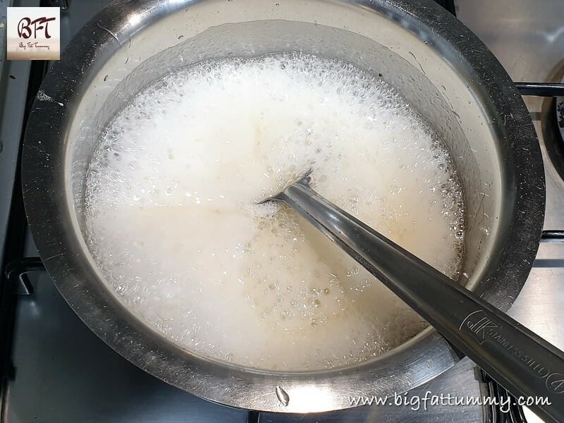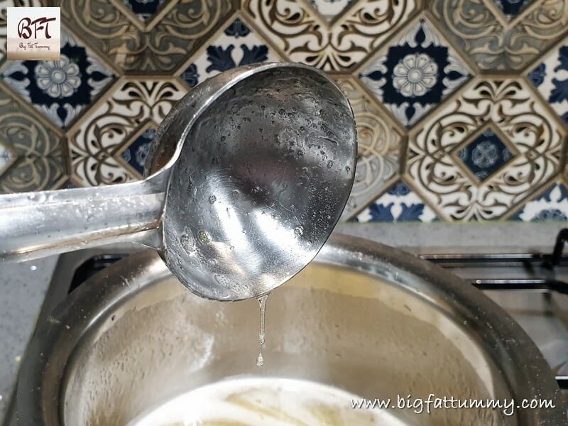 Step 4:     Turn off the heat when a thread like consistency is formed (see pic).