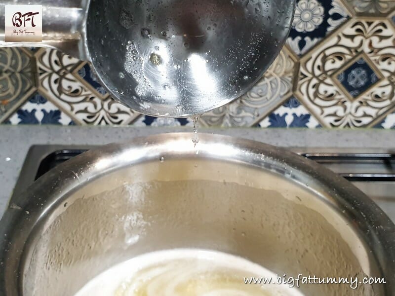 Step 5:     Take off heat and pour into a heat proof bowl and let it rest for 2 mins.