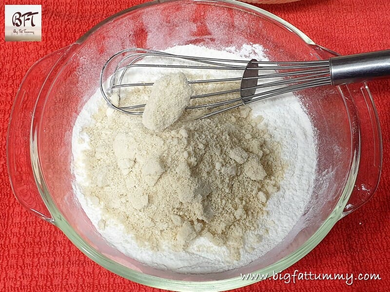 Step 1: Mix the maida, cornflour and baking powder. Sift and keep aside.