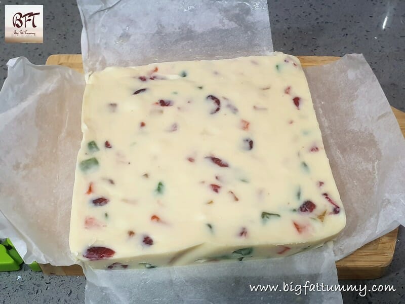 The White Chocolate Fruit Fudge is superciliously delicious. If making it for a special occasion, you may have to keep it locked up until D-Day. For if you fail to watch or protect it, it will be gone in a matter of minutes with the oldies and youngies all attacking it. The White Chocolate Fruit Fudge guarantees everyone’s sweet cravings satisfied.