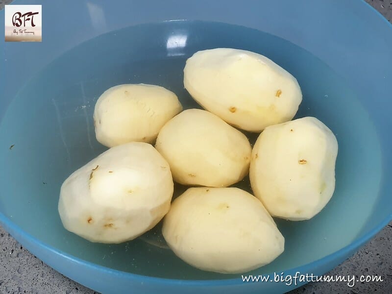 Step 1: Wash the potatoes well to remove any dirt. Peel the potatoes and boil them in adequate water with ½ tsp. salt till fork tender.