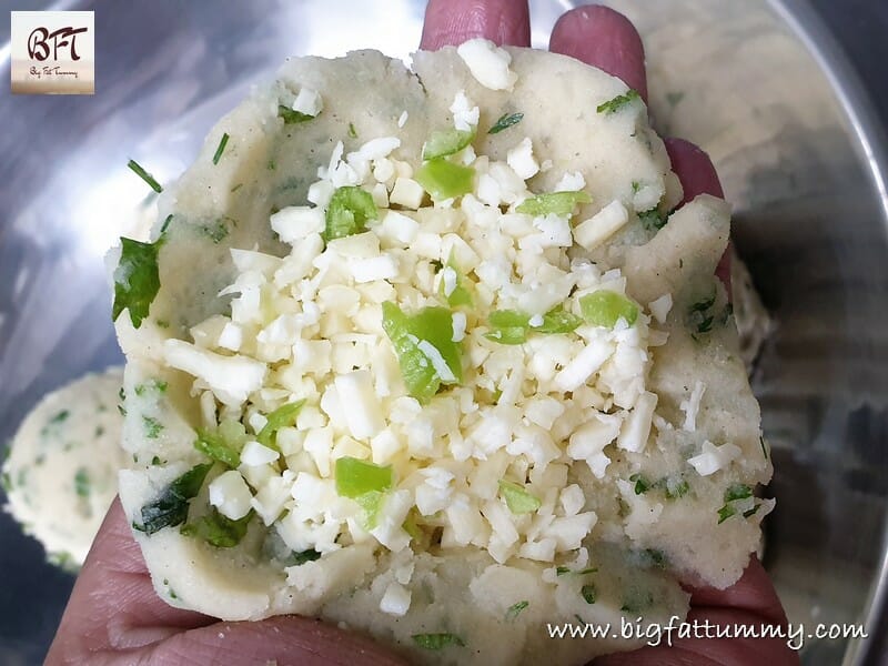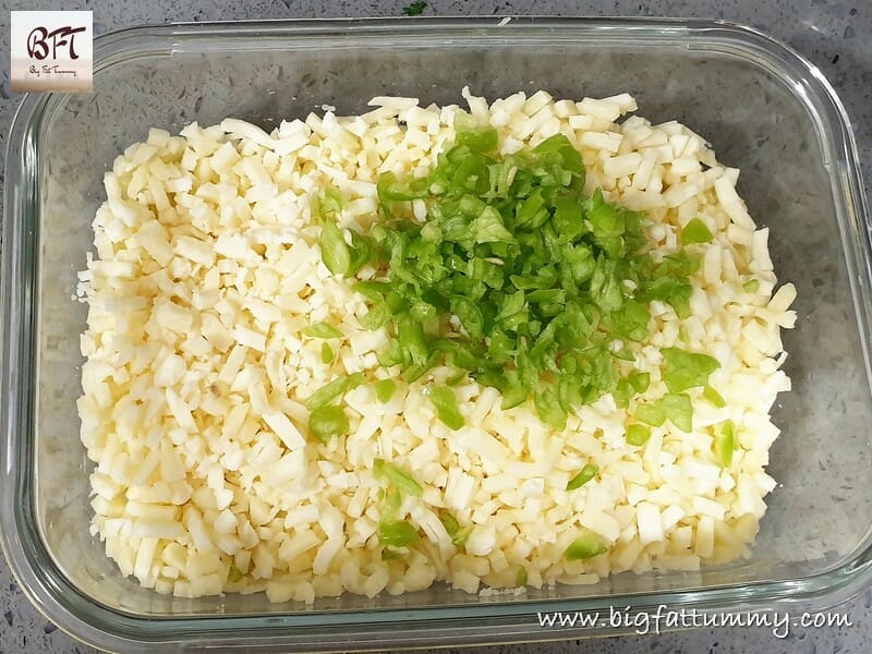 Step 4: Mix the grated cheese and the minced green chillies for the filling.
