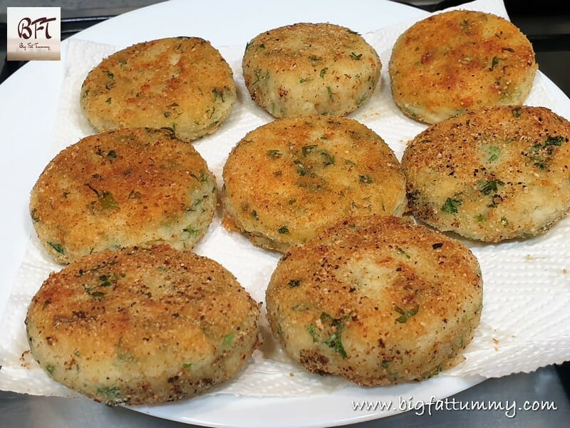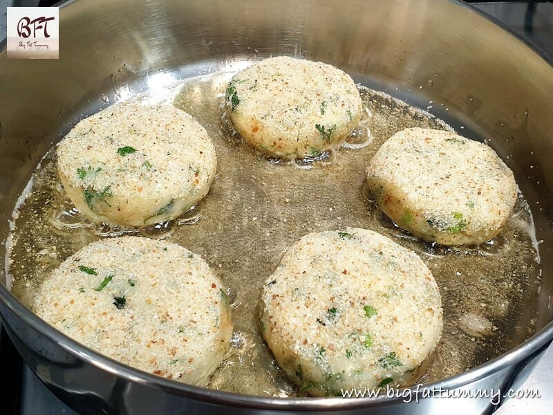 Step 6: Shape each ball to form a chop and coat with the bread crumbs. Shallow fry till light golden and transfer to a plate lined with tissue paper. Serve hot or warm.