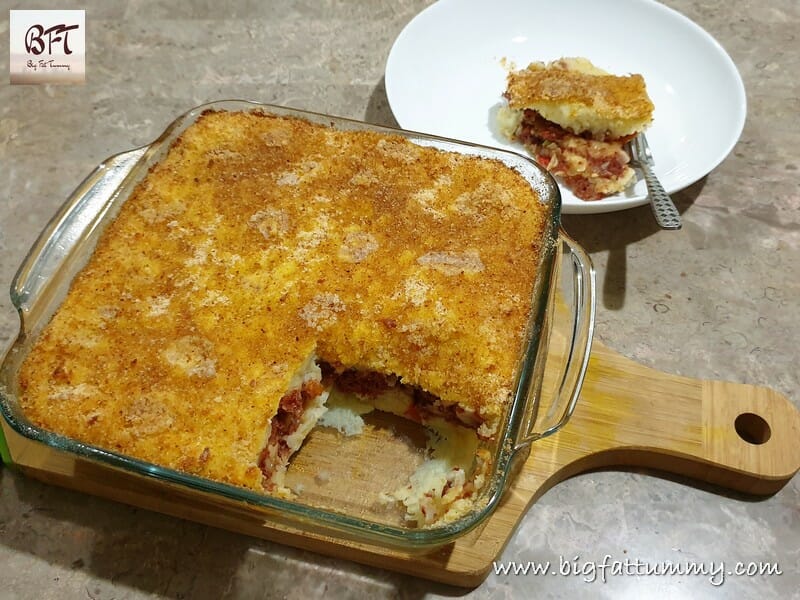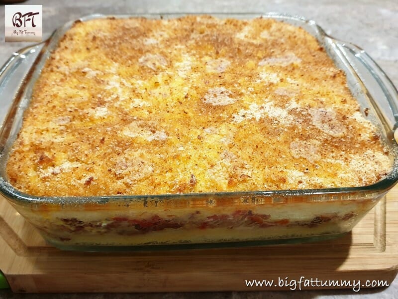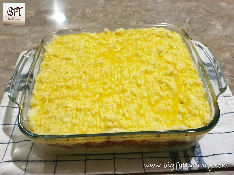 Step 11: Pre-heat your oven to 200° C for 15 minutes and then bake the pie at 180° C for 30 to 35 minutes till the top layer gets a nice golden colour. Serve hot.