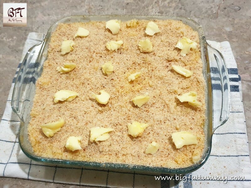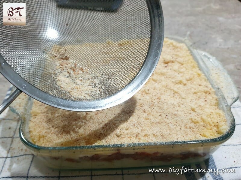Step 9: Sprinkle some bread crumbs in a thin layer to cover the top layer (The crumbs will give it a slight crunch. Do not use too much of Bread Crumbs.)
