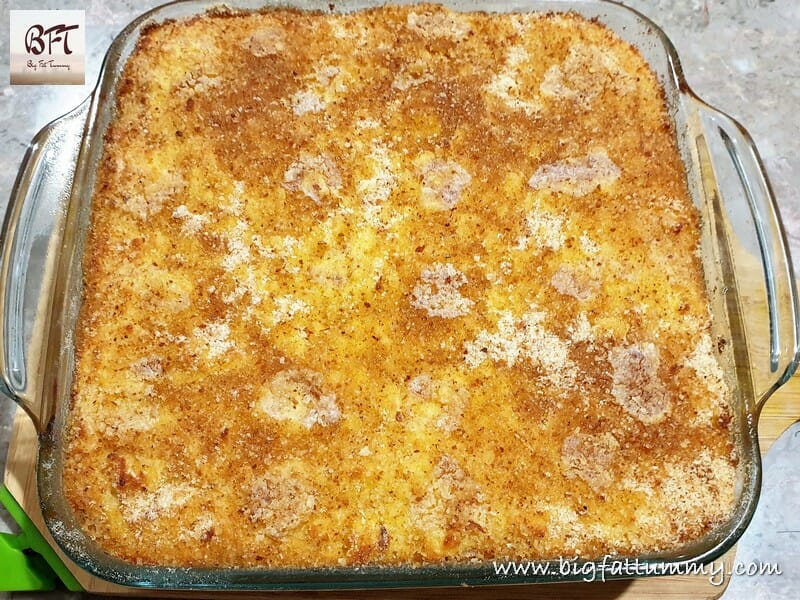 Step 5: Grease a baking dish ( 8 inch – preferably glass) with a little butter.