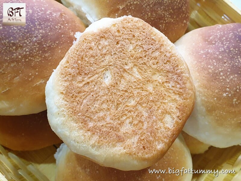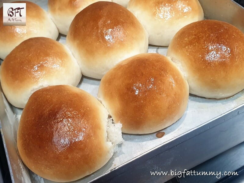 Goan Pao / Pav Indian Bread is an easy to make bread and uses a few ingredients. Although, the recipe looks lengthy and daunting, it is quite easy to make. We’ve tried to imitate the way commercially sold bread is made, in detail and hence this post is more descriptive. There is no milk, egg or butter used in this recipe. However, if you like your bread to be shiny you can coat the top of the dough balls lightly with milk and after baking with a little butter. I have used a stand mixer to make the dough but you can knead it by hand also. It will take a little more muscle power and time though. (For a No Knead Pao, click here)