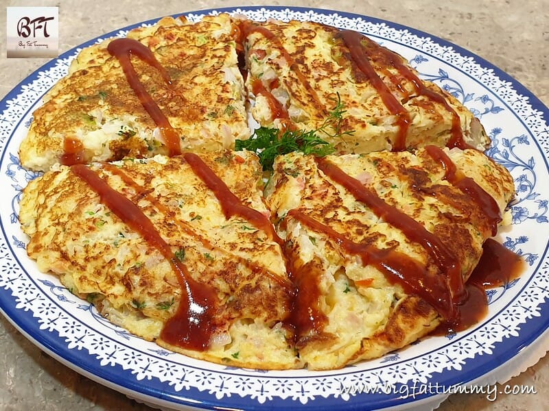 Step 5: Turn the omelet over (use the lid to help flip over) and cook the other side uncovered for another 2 to 3 minutes. Serve hot with tomato ketchup (for a homemade ketchup, click here)