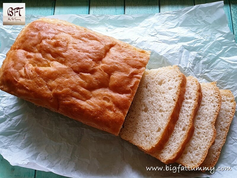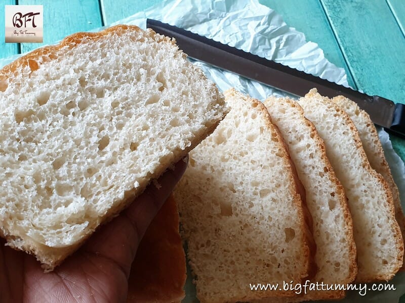 Bread Loaf – No Knead is as the name suggests a recipe for Bread Loaf which needs absolutely no kneading. You just have to mix the very few ingredients together with a spatula and then proof the dough before you bake it. What you get for your minimal effort is a light and porous loaf, which you can slice and use for numerous needs. So go ahead and try this chemical and preservative free bread today (For other bread or cakes, click here).