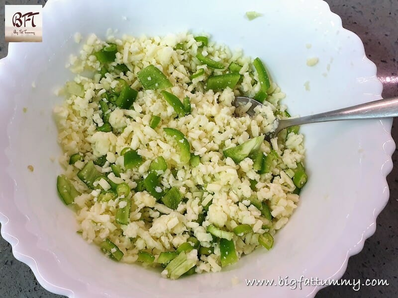 Step 2: Mix all the ingredients for the topping except the red chilly flakes and keep aside.