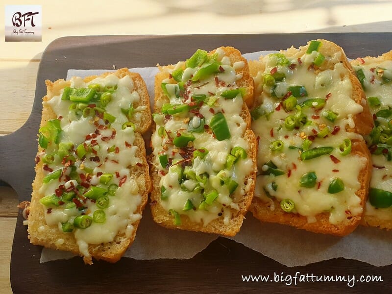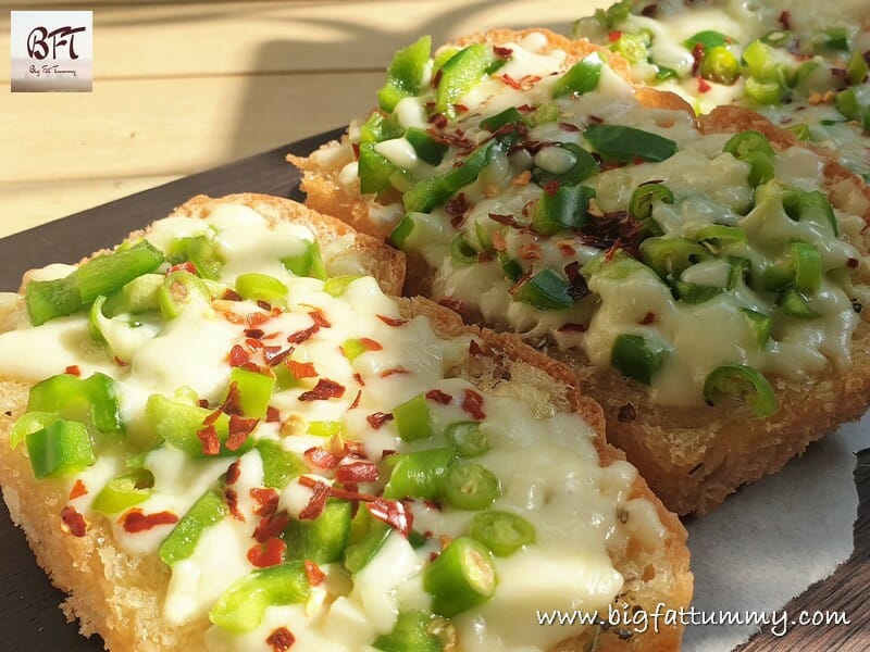 Cheese Chilly Toast is a popular cheesy and spicy, anytime of the day snack, that youngsters and elders alike love. We use our No Knead Bread Loaf (click here) to make these beauties as we find the crumb of this bread loaf slices to be best suited for the Cheese Chilly Toast. To prepare them you can either pan toast or heat in the oven.