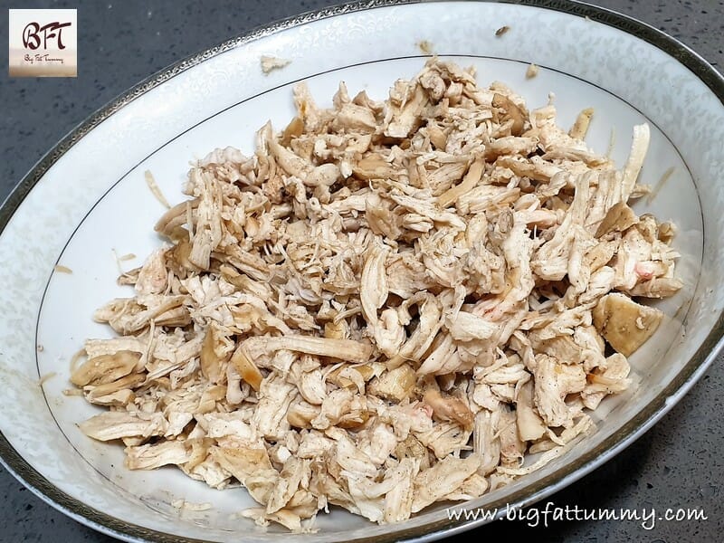 Step 2: Shred the chicken breasts as shown in the picture and keep aside.