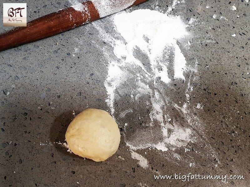 Step 2: Add the soda-bicarb and mix again. Then add the maida, little by little and knead to a soft dough (I used 1 ¾ cup of maida). Do not use any water to knead the dough.